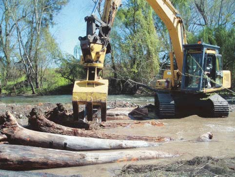 Large wood being anchored into a waterway. Photograph: North East CMA