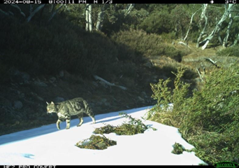 Trail cameras capture everything from cats making fresh tracks through the snow, cats chasing Bogong moths and sometimes, unfortunately carrying small native mammals they've caught as prey. The hardest images to review are those with small native species on camera closely followed by a feral cats passing through the same spot moments later. These images remind us why this work matters.