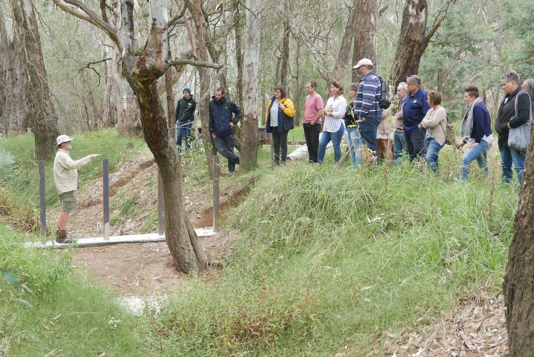 Yorta Yorta Dja Dja Wurrung man Damien Saunders, together with Ian Minns and Kelvin Berry from Wangaratta Landcare & Sustainability welcomed delegates on Wednesday to Mullinmur Billabongs to kick off the annual Cascades Connections Landcare Facilitator and Project Officer event.