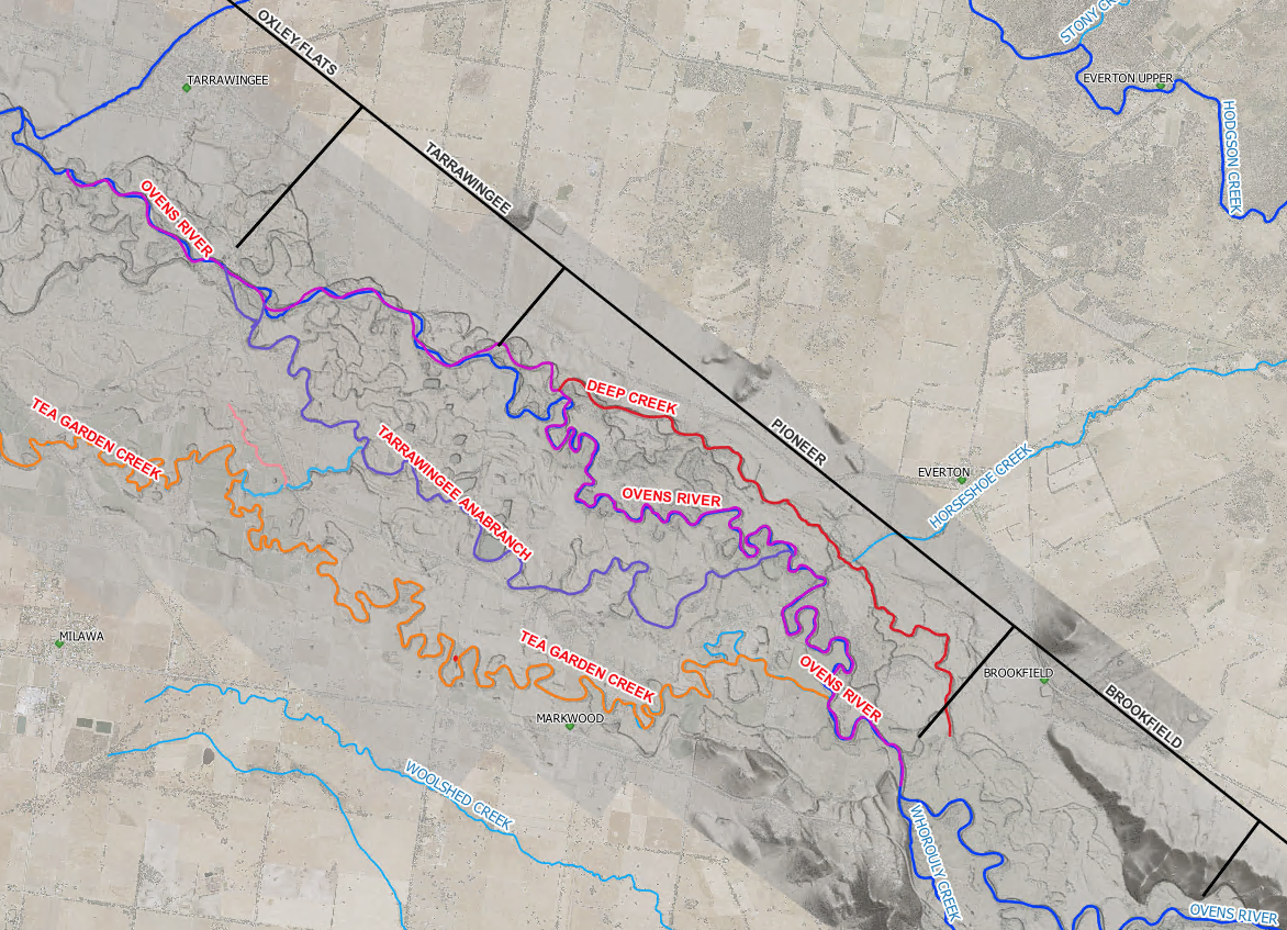 A map of the project area (confluence of Whorouly Creek and the Ovens River and continued until Tarrawingee) is provided below: