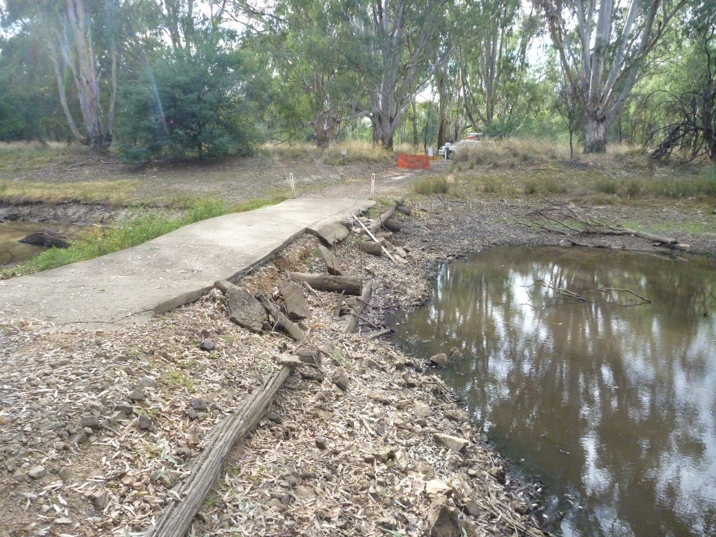 Through this study a number of crossings and other barriers to flow were identified through aerial mapping and flow modelling. One example was Frosts Crossing Track within the Warby-Ovens National Park which was rebuilt to provide connectivity at times of low flow within the floodplain, but still allow access into the Park.