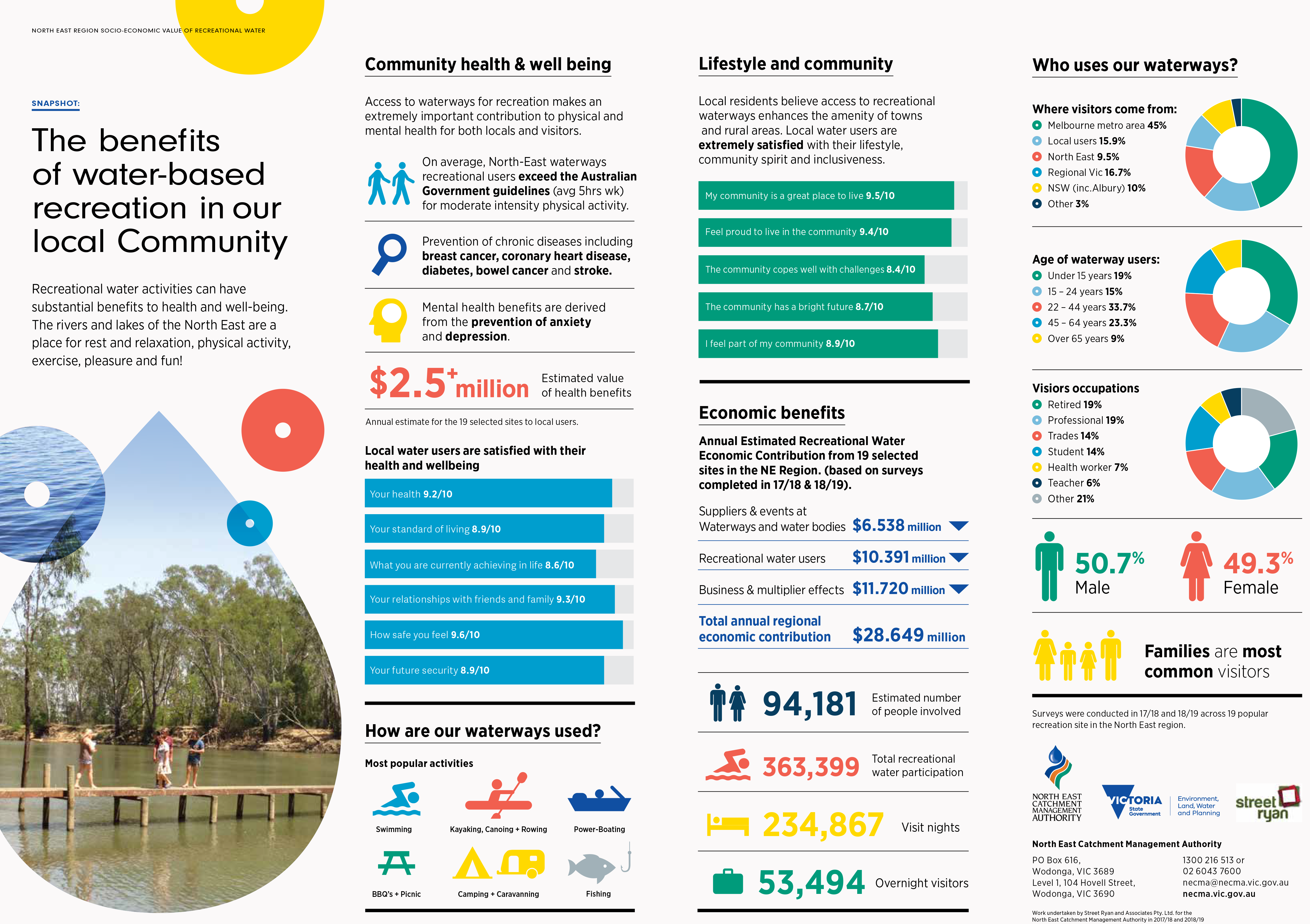 The study was completed by Street Ryan and Associates Pty. Ltd. on behalf of the NECMA, who conducted over 2,000 interviews of people using & visiting the waterways and waterbodies, local businesses and service providers, between 2017 and 2019.
